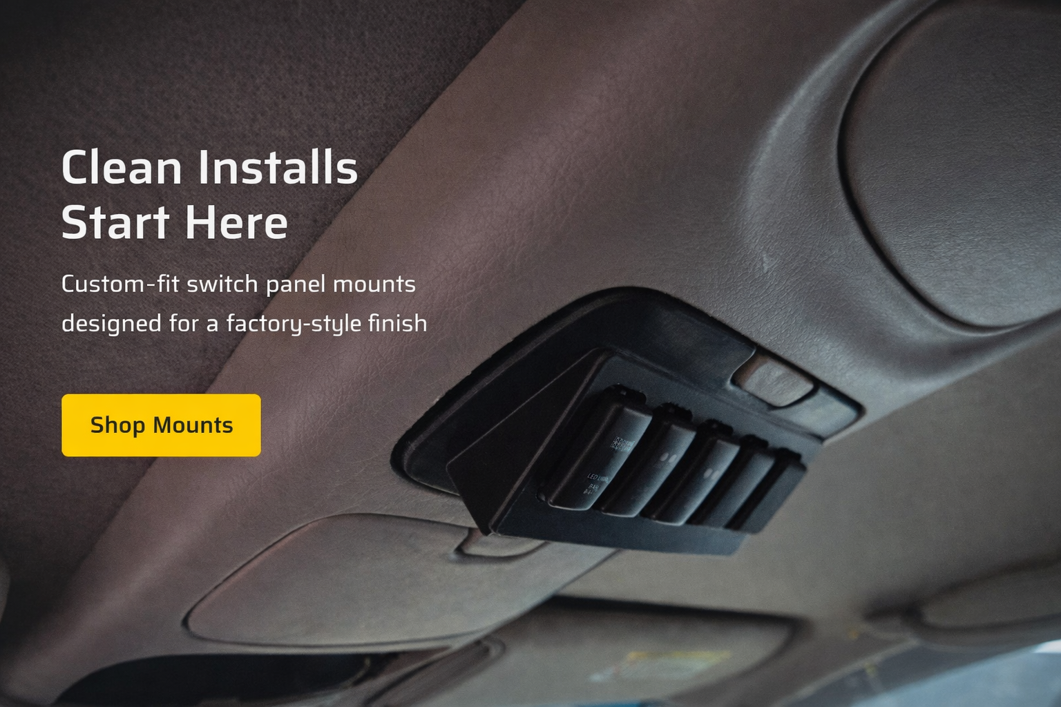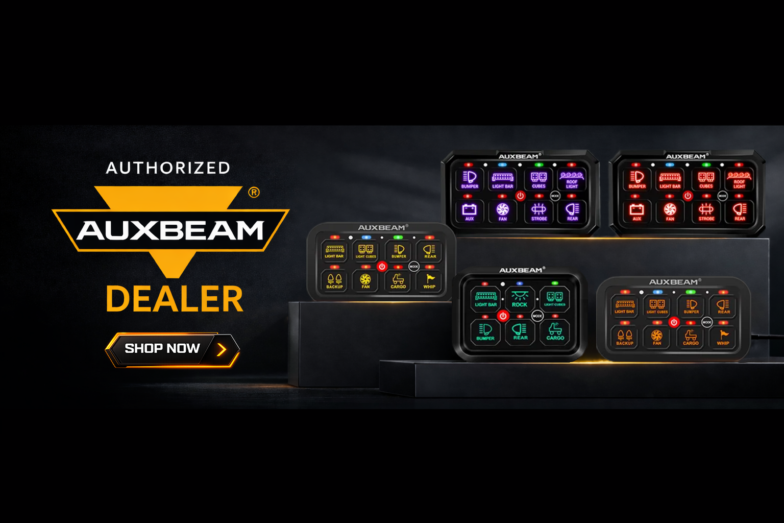 Our mounts are designed for specific switch panels such as the Diode Dynamics D-Switch, Auxbeam 6/8/8XL, Switchpros SP9100 and other popular systems. Check each product listing for compatibility details.