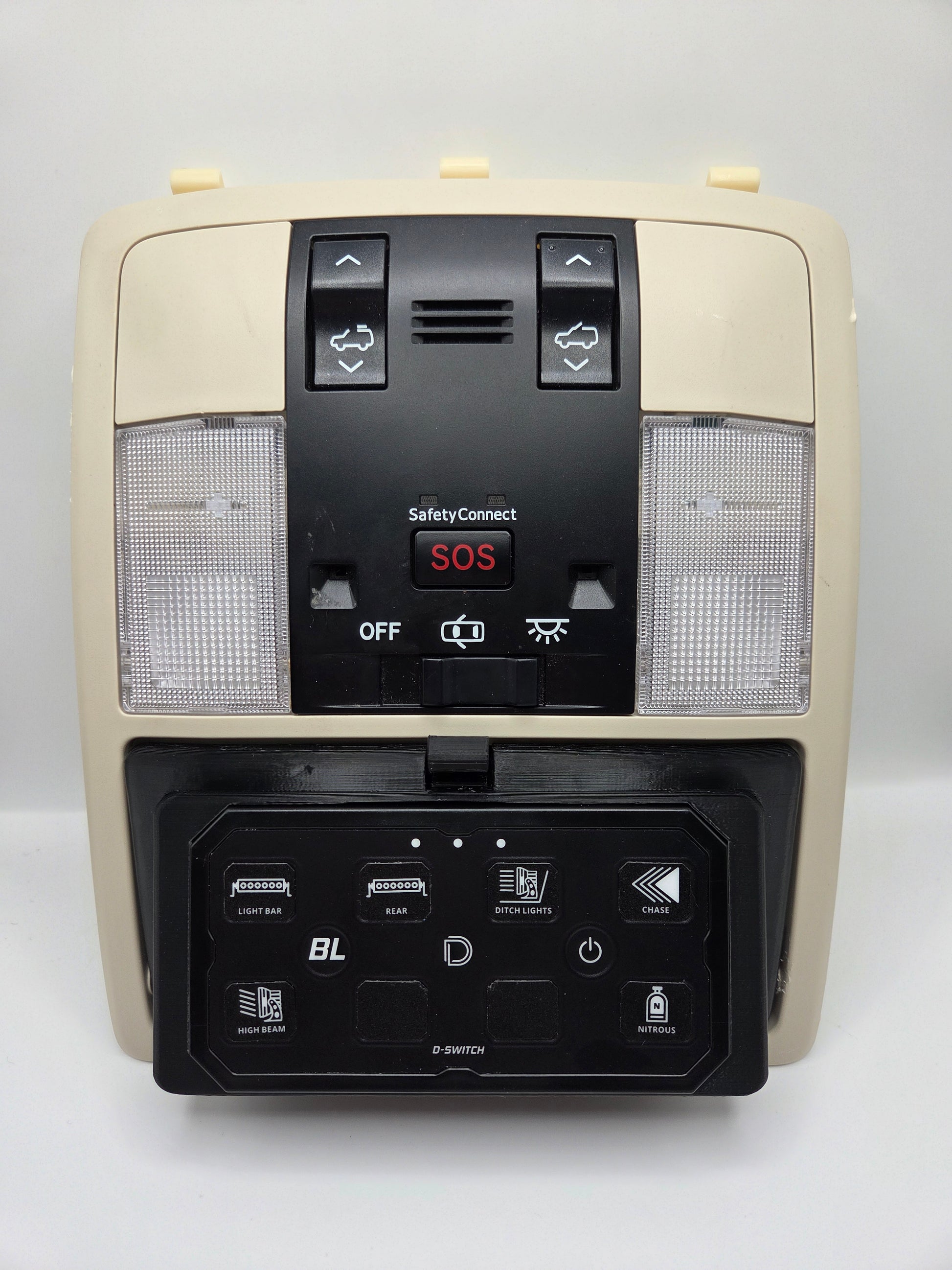 Customize your 10-23 Lexus GX460 with our 3D Printed Diode Dynamics D-Switch Panel, a direct replacement for the stock overhead popout mirror. This panel is designed to work seamlessly with the Diode Dynamics D-Switch panel, allowing you to control auxiliary lighting, fog lights, air compressors, light bars, and more.